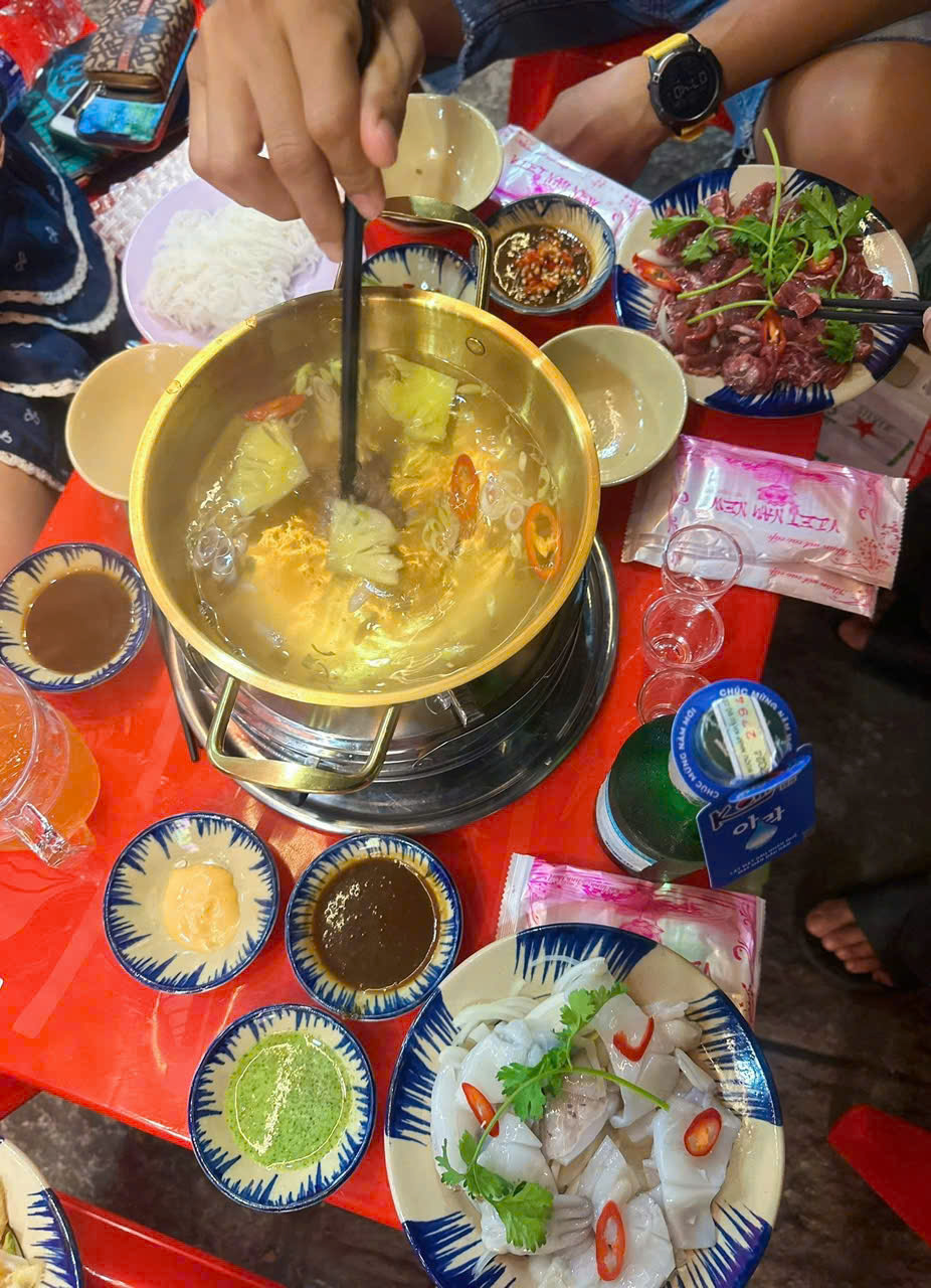 Thịt bò tại quán được lựa chọn kỹ lưỡng mỗi ngày, đảm bảo độ tươi ngon. Khi nhúng vào nước giấm đang sôi, từng lát bò chín tới, mềm ngọt và giữ trọn hương vị tự nhiên.